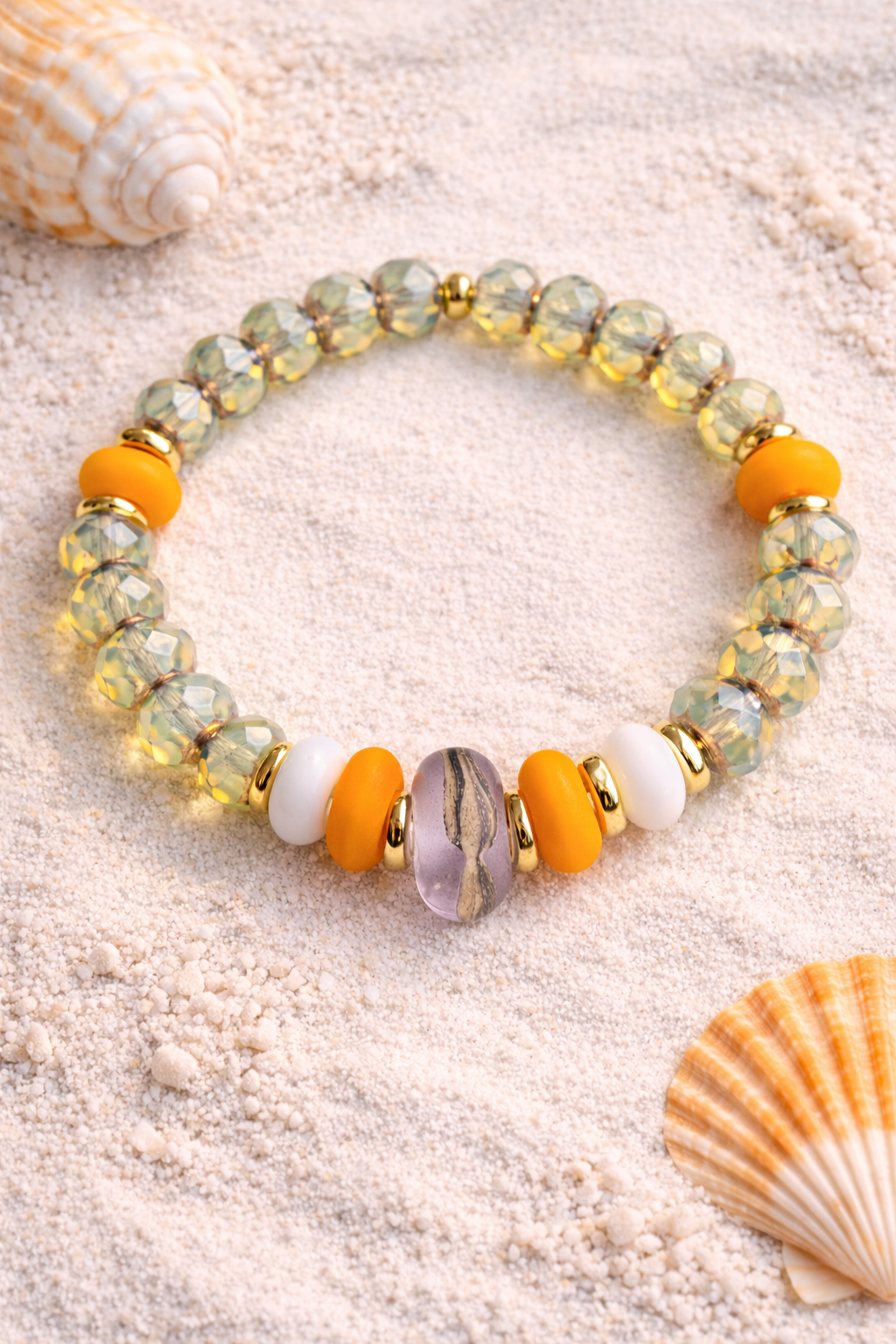 Each bracelet in this collection is one of a kind, crafted from a unique mix of lamp work beads, stone and faceted glass beads