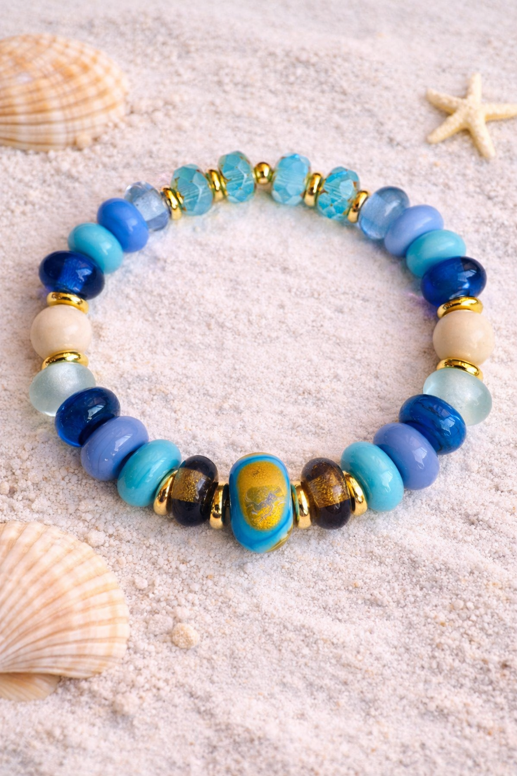Each bracelet in this collection is one of a kind, crafted from a unique mix of lamp work beads, stone and faceted glass beads
