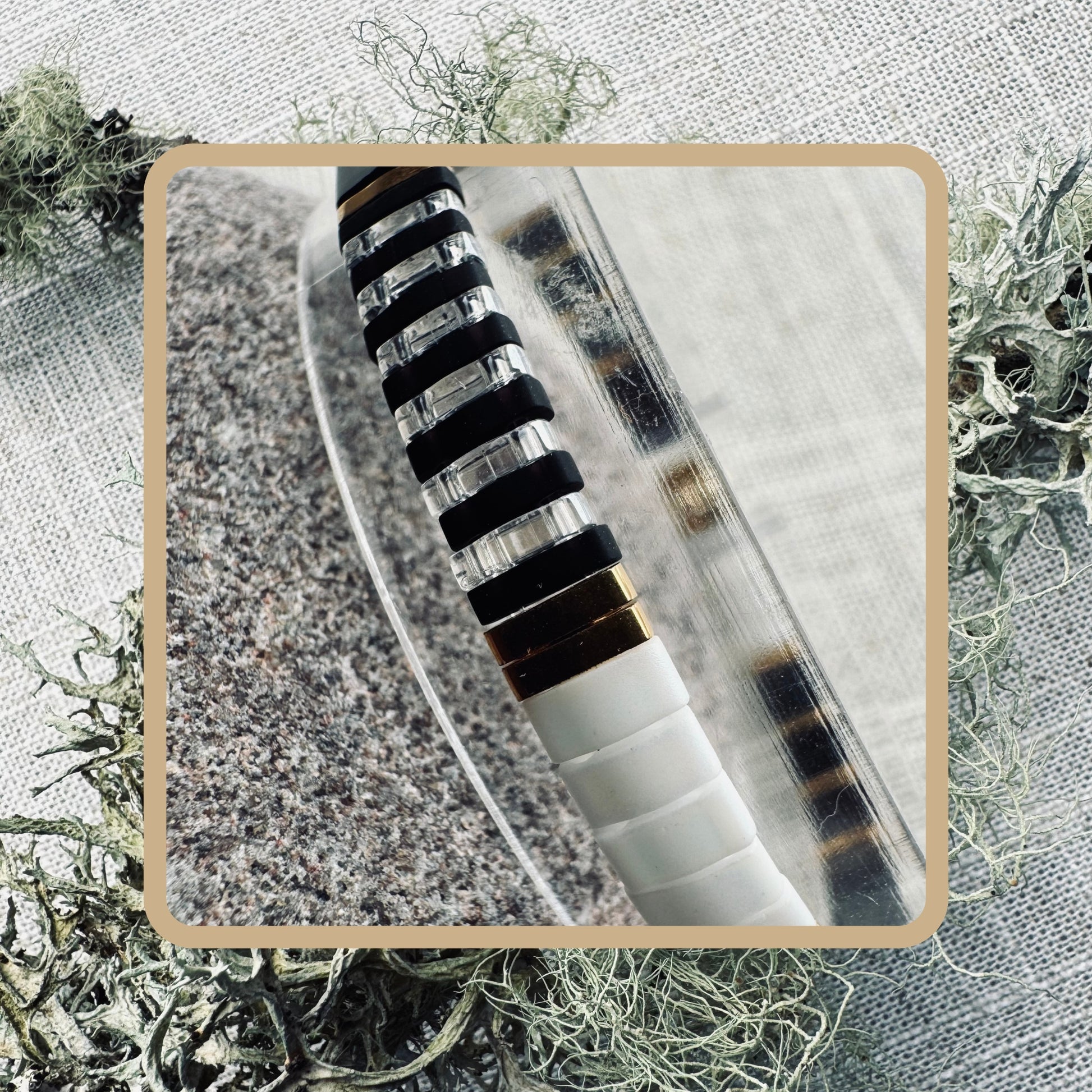 Where dark meets light—Shadowlight blends glossy black beads with matte and pearly whites, creating a quiet tension that feels both bold and serene. A minimal piece with maximum impact.